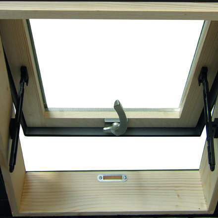 Janela composta por materiais preparados para diminuir o risco de infiltração da água com o passar do tempo, mesmo com o desgaste dos mesmos. Os braços de abertura e de fecho permitem a inclinação da janela a 180 graus, para facilitar o acesso ao telhado.